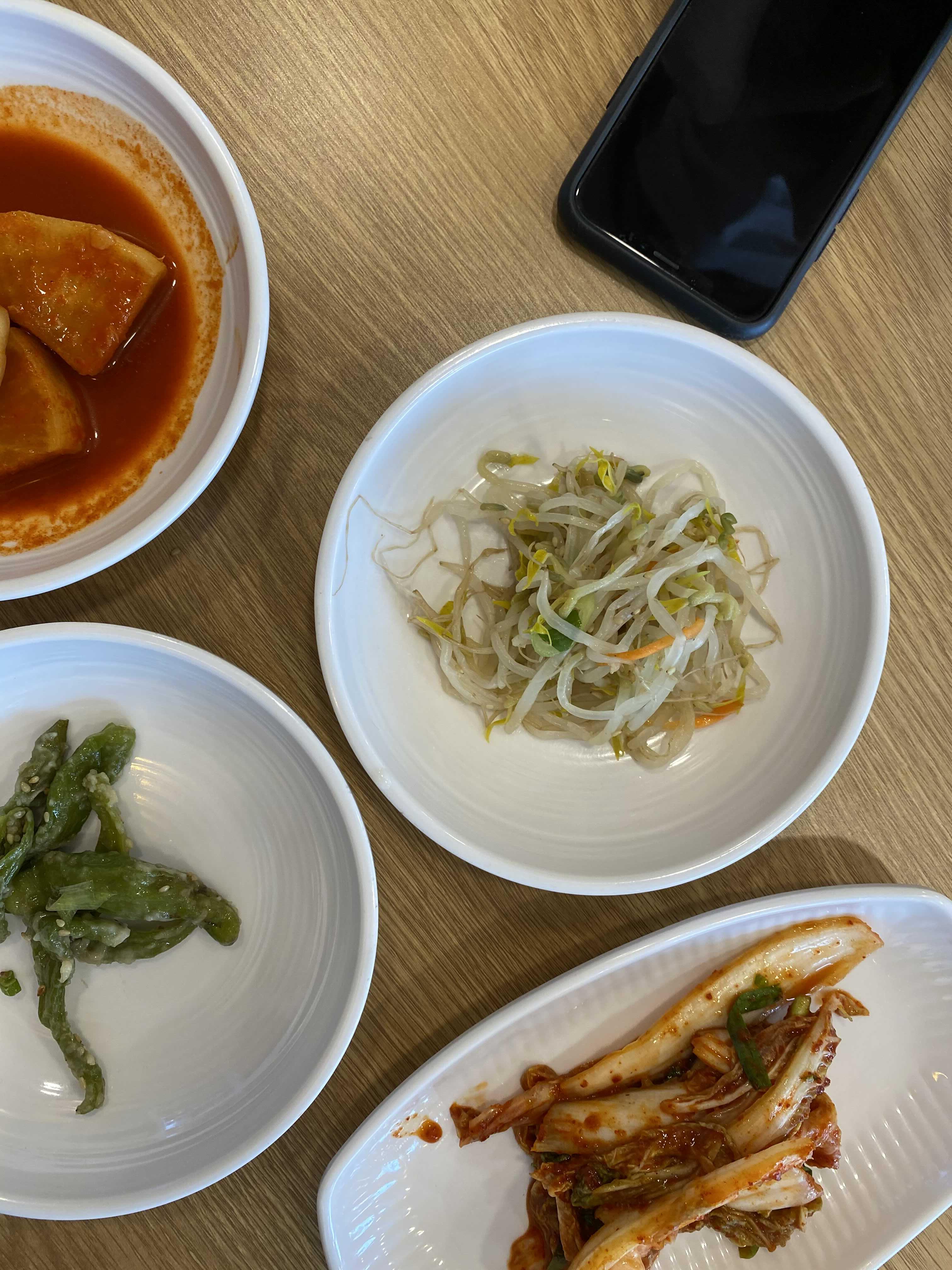 육계장을 먹으러 갔으나, 육계칼국수가 갑자기 훅 땡기더라고요. 육칼국수 2그릇 주문하고, 곧 밑 반찬등장!!