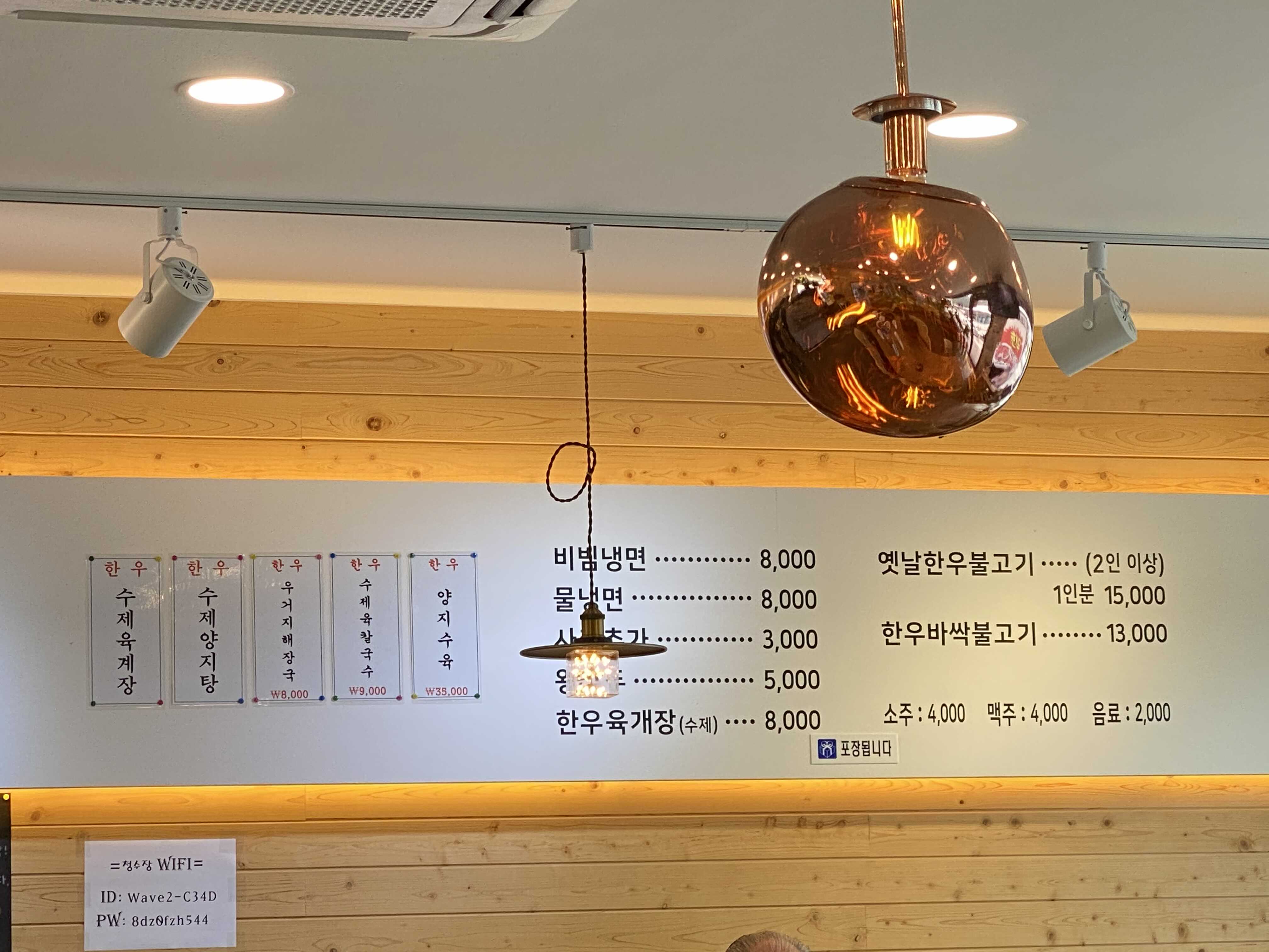 💶 한우육계장 8천, 비빔내명 8천, 육계칼국수 9천