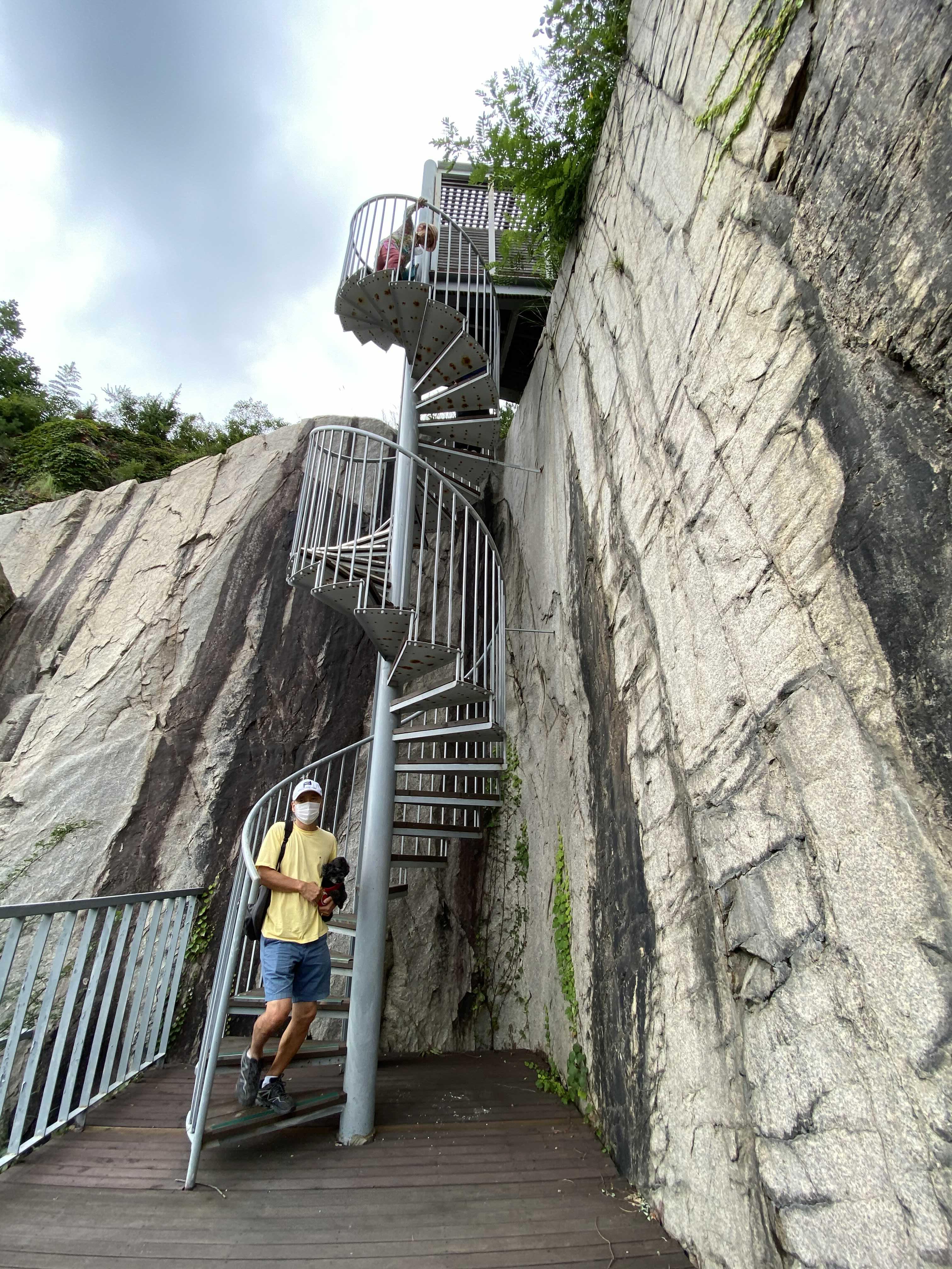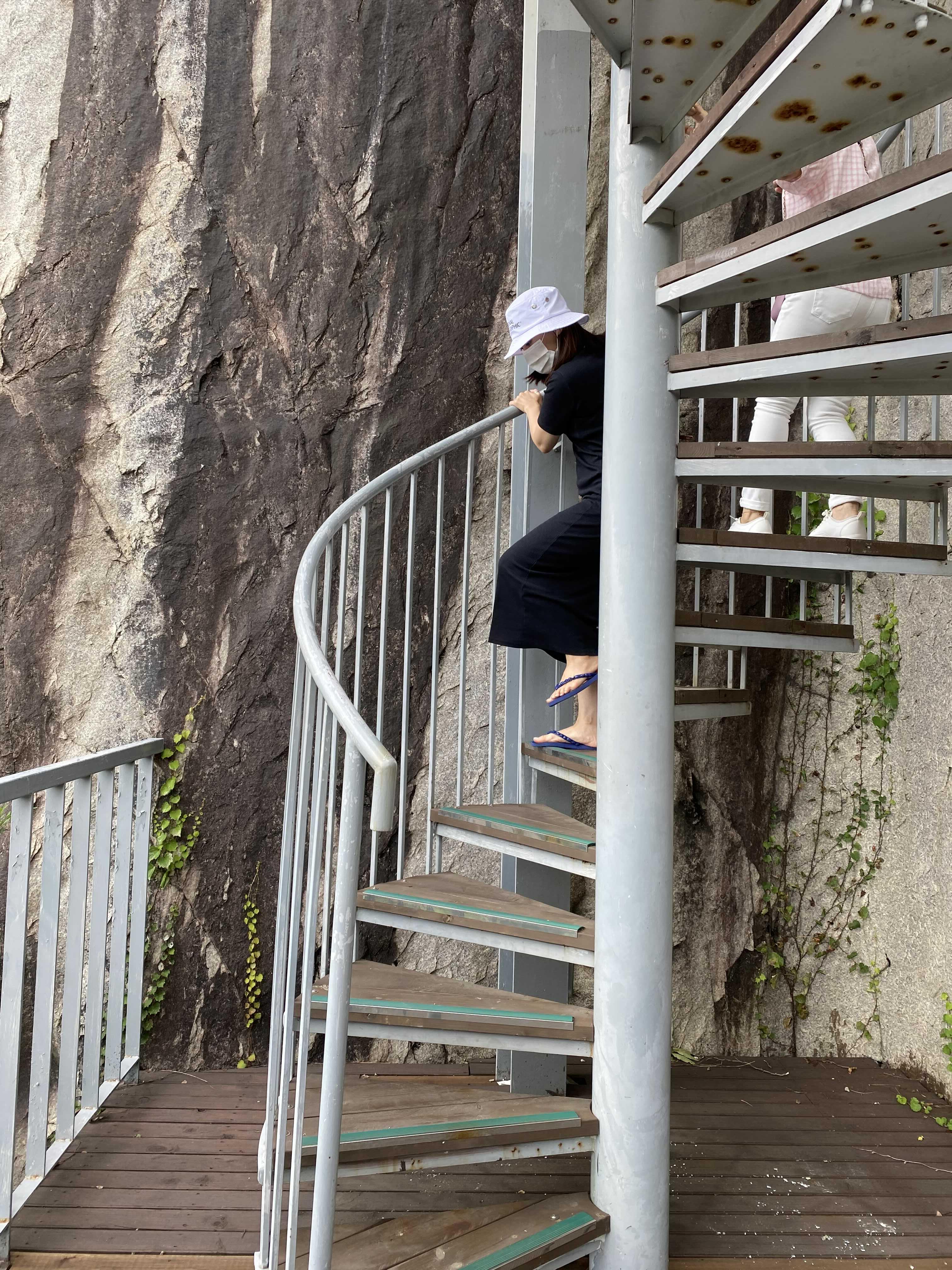 내려올때는 수직하강 돌음계단으로 내려와야하는데요