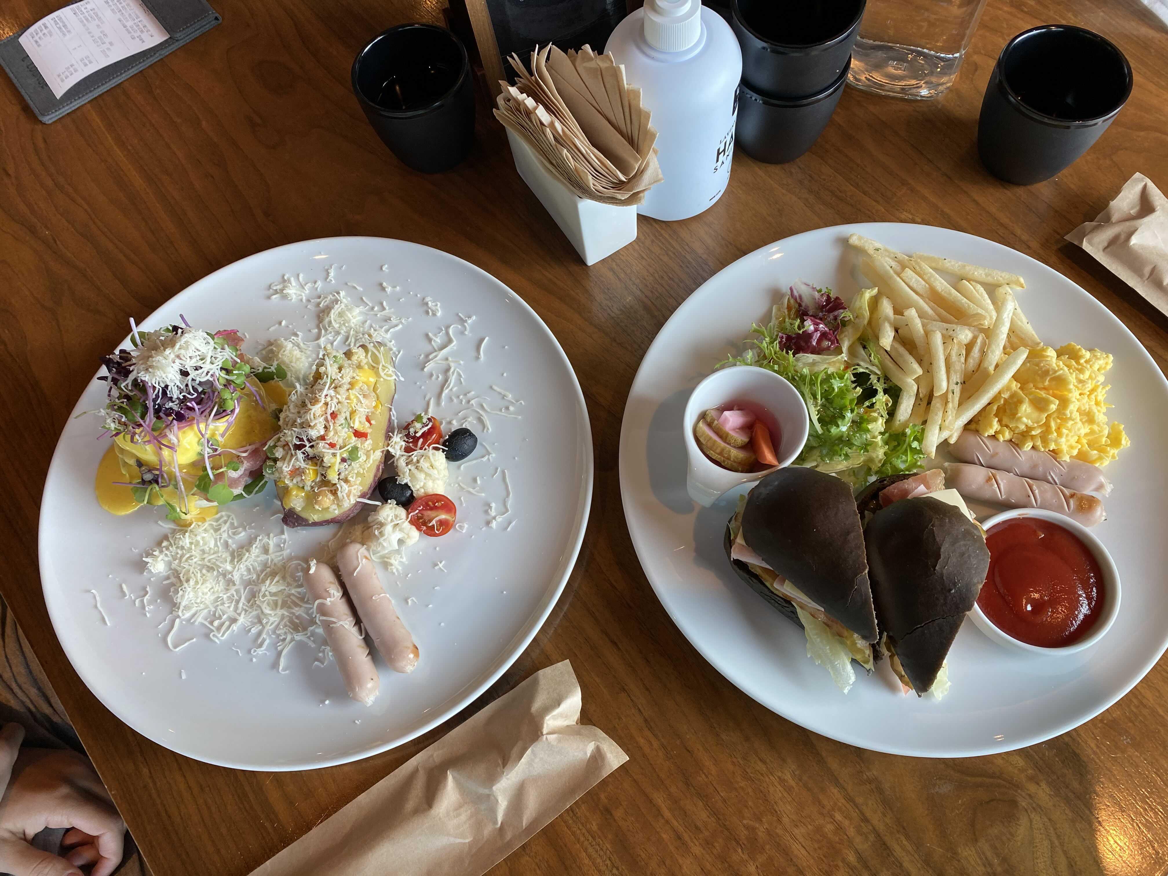 에그타르트와 먹물샌드위치를 주문했어요. 예쁘게 플레이팅 되어 나오니 먹음직스러워 보이네요. 맛은 쏘쏘해요.