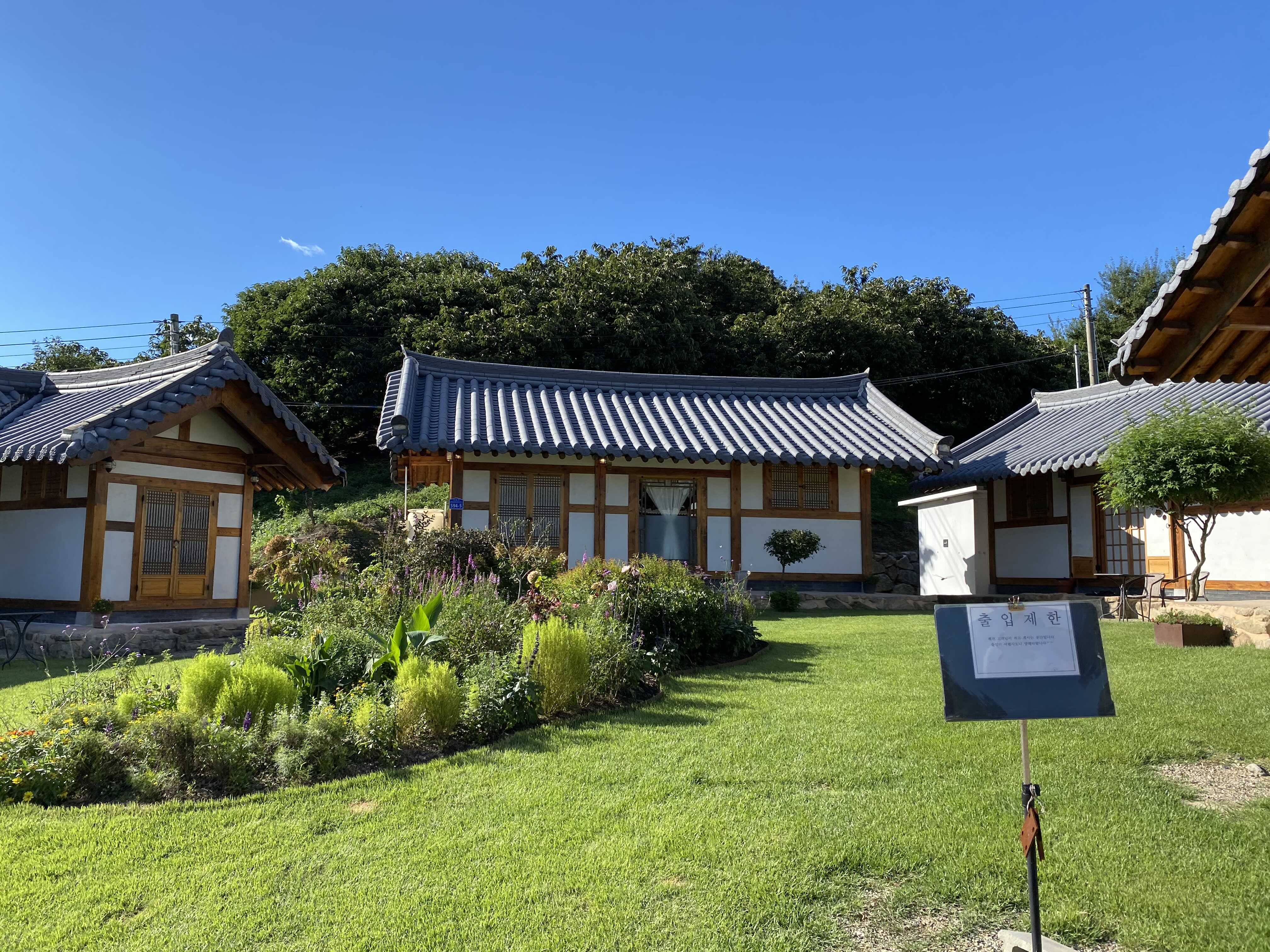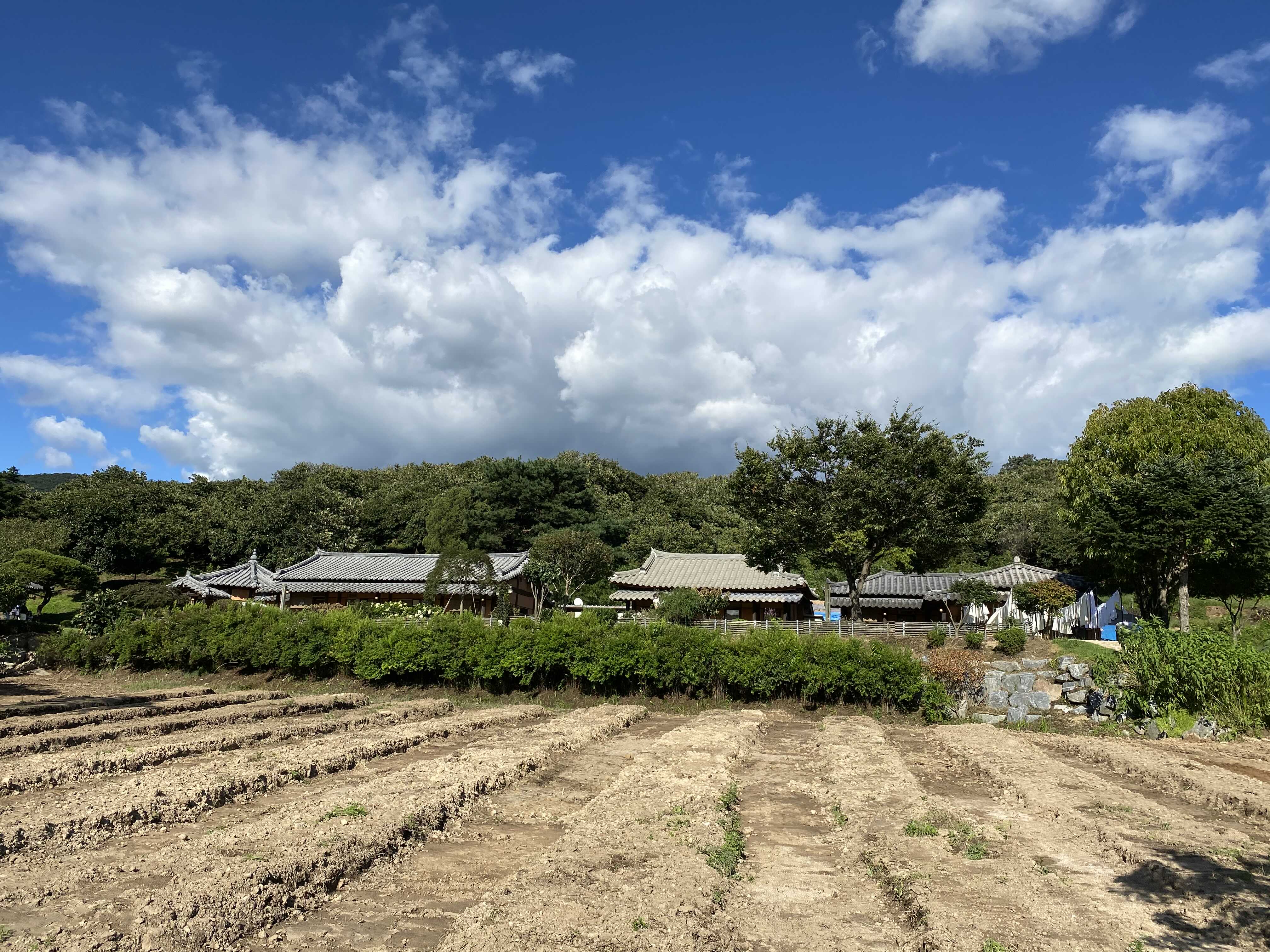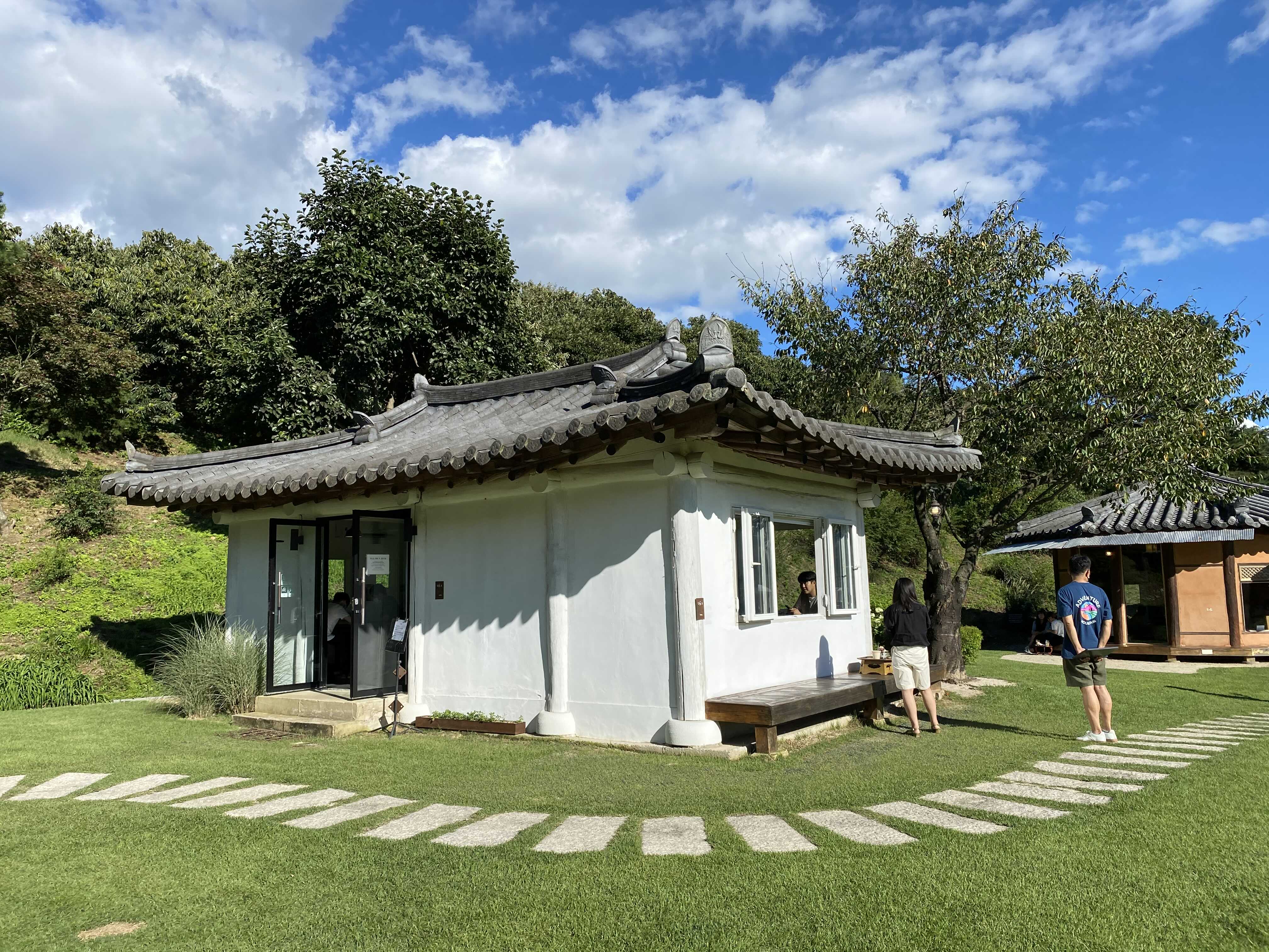 푸른하늘에 점박이 같은 구름. 그 아래 리솜 포레스트가 예쁘게 잘 어울려 있어, 조식 먹으러 가는 길 산책하면서 연신 여기 너무 이쁘다 남발했어요.