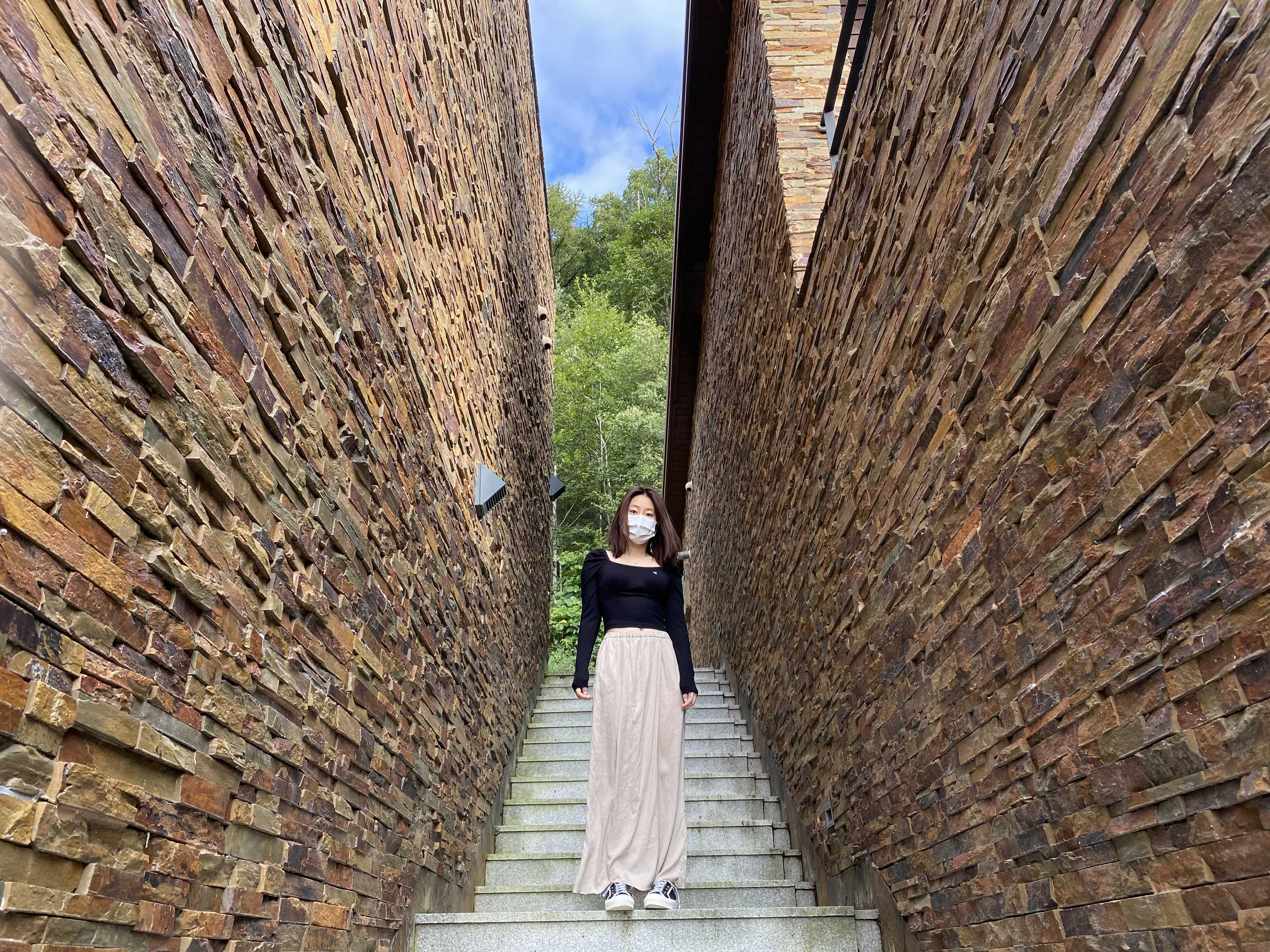 아침 멍을 때려주고, 조식을 먹으러 향했어요. 객실 외부계단에서 한 컷. 외부계단도 사진맛집이네요.