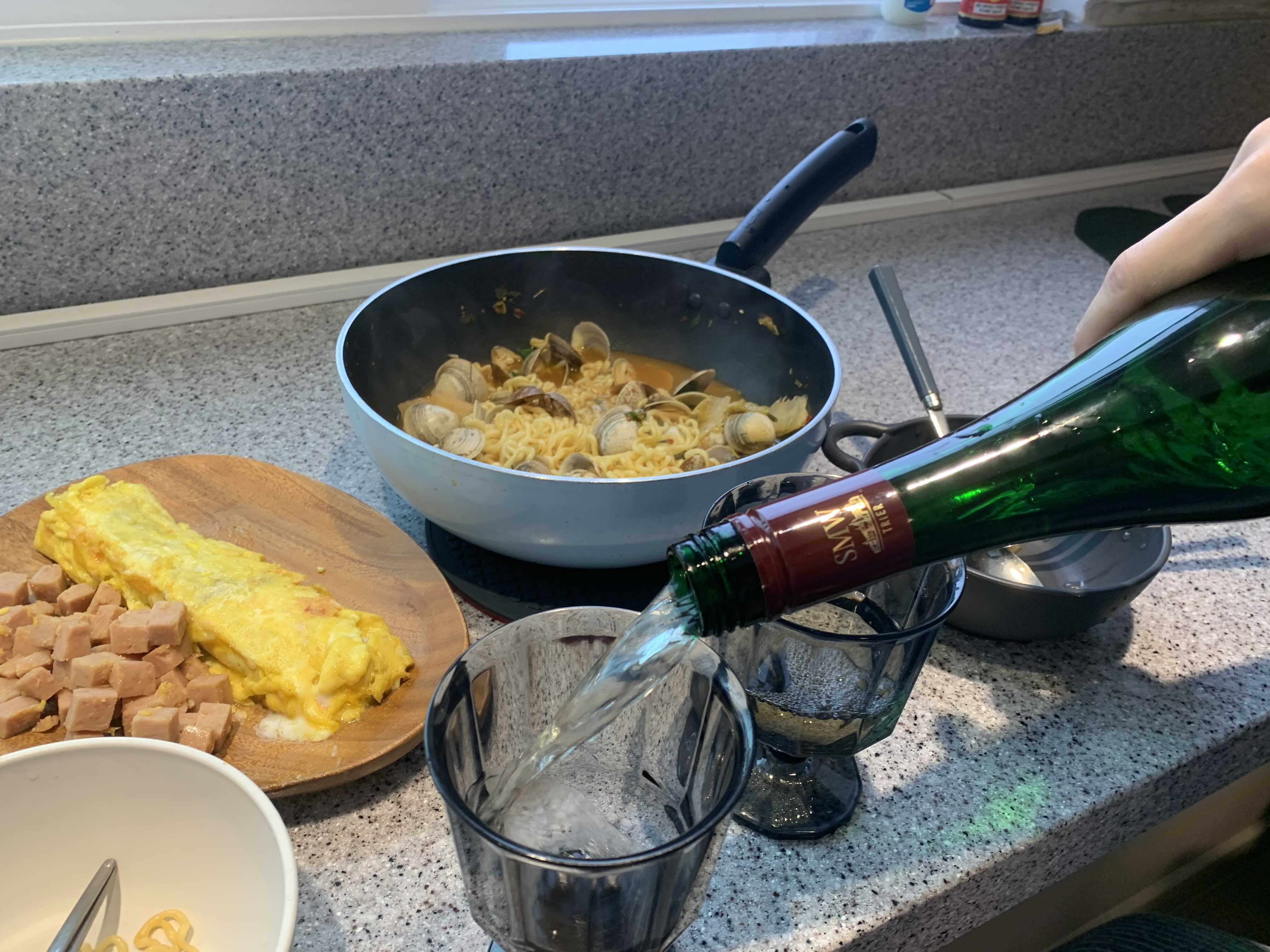 서먹서먹이 준비한 낙곱새전골과 화이트와인에